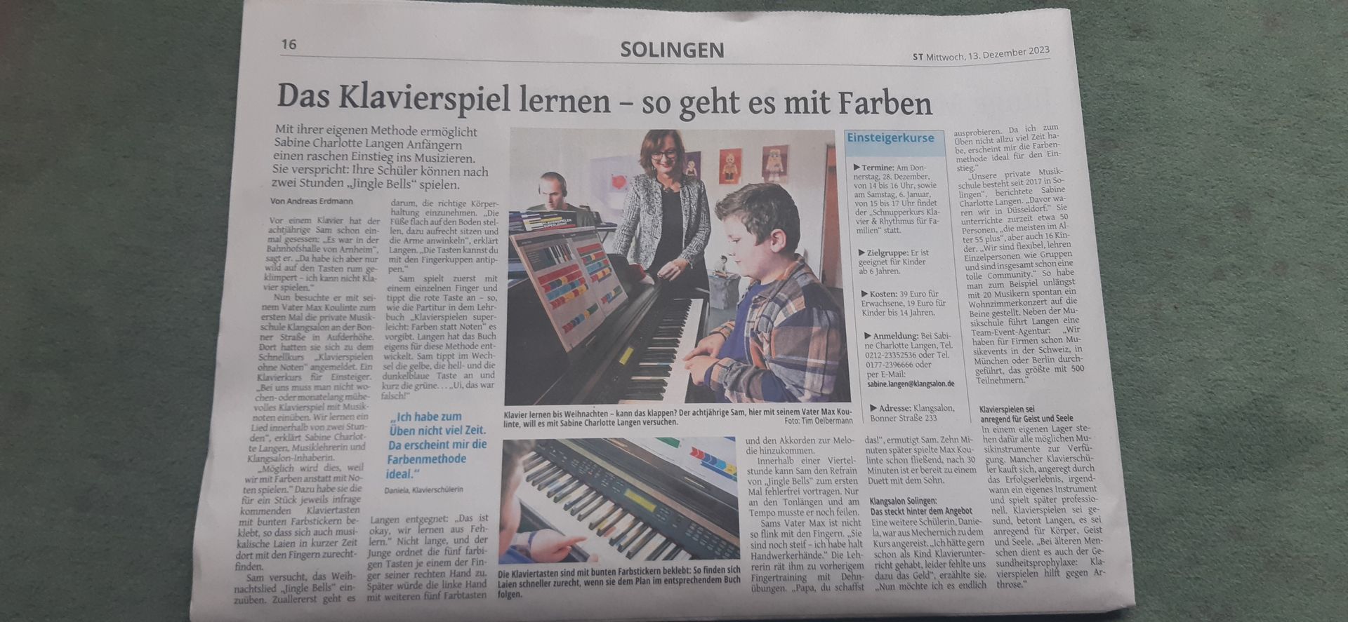Gute Presseresonanz: Das Solinger Tageblatt berichtet über den Klangsalon am 13.12.2023